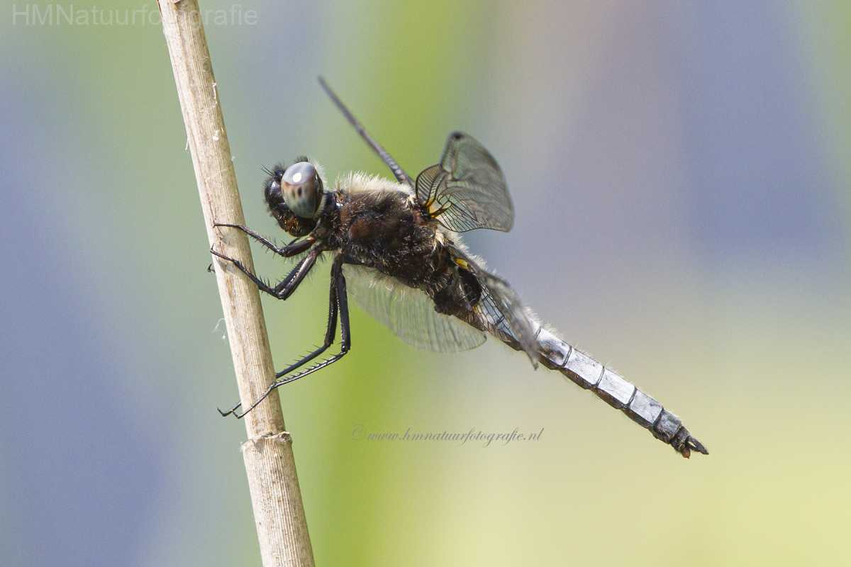Een vrij zeldzame soort met meestal aan de vleugelpunten donkere vlekken. Mannetjes hebben een blauw achterlichaam met een donker eind aan S8-S10. Vrouwtjes zijn bruin met een donkere middenstreep vanaf S5. Oudere vrouwtjes worden donkerbruin. Ze zijn vooral aan te treffen bij water met veel riet aan de oevers.