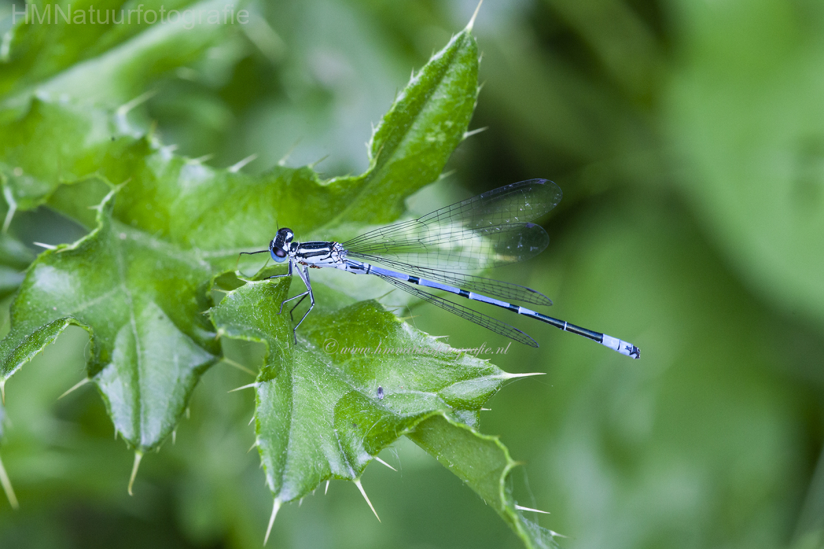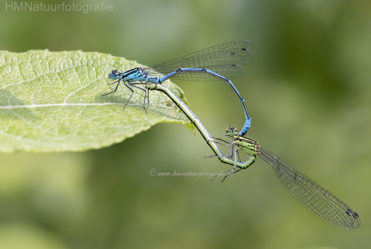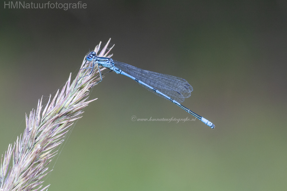 Deze blauwe soort is zeer algemeen in Europa waarbij het mannetje een kenmerkende U-vorm heeft op S2 en zwarte in punten uitlopende zwarte strepen op de zijkant van het achterlichaam. Voor de vrouwtje is de vorm van de halsschildrand bepalend. Onderzoek met een loep of goede detailfoto’s zijn bepalend.