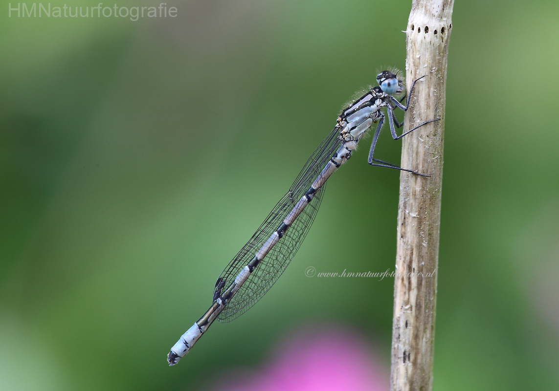 Een van de wijdst verspreide juffers. Het mannetje is herkenbaar aan de paddenstoeltekening op S2 en het vrouwtje aan vlekken op het achterlichaam die aan torpedo’s doen denken. De vrouwtjes komen in een bruine en blauwe vorm voor.